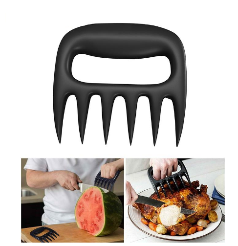 É uma espécie de garfo de mão com 6 garras afiadas que corta e desfia a carne, além de também servir para misturar saladas, servindo também de apoio para cortar diversos tipos de alimentos, como melão e melancia, por exemplo.