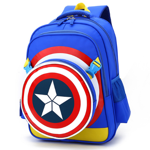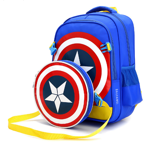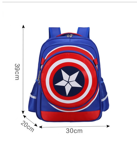 Mochila infantil do capitão america, na cor azul, tamanho da mochila é de 39cm de altura e 30cm de largura, a mochila acompanha um mini ''escudo'' que vem preso nela mas pode ser retirado e usado como lancheira ou outras coisas, esse mini escudo tem 22cm mais ou menos, produto novo