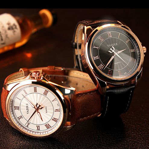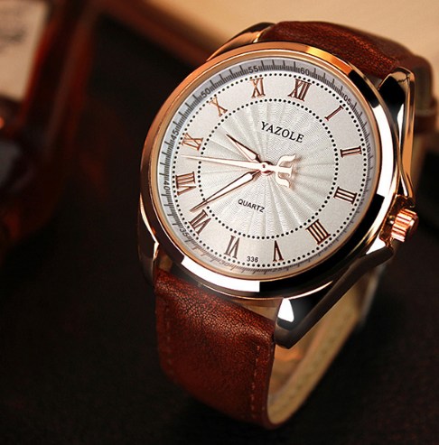 Relogio Yazole Luxo Romano - Lindo design com algarismos romanos - maquina japonesa - movimento quartz - pulseira em couro preta ou marrom - importação oficial. - Excelente presente.